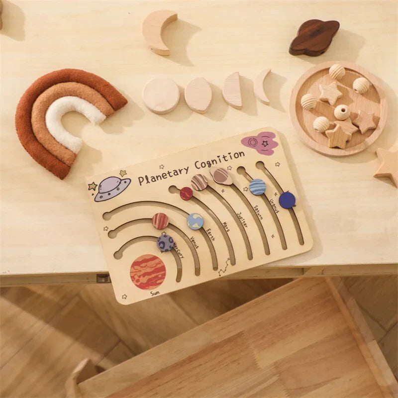 Designed for both play and education, the Galactic Discovery Board helps children develop essential skills while having fun. Moving the different elements enhances fine motor skills, improves hand-eye coordination, and strengthens cognitive abilities. It also introduces early scientific concepts, making learning about space an exciting adventure.