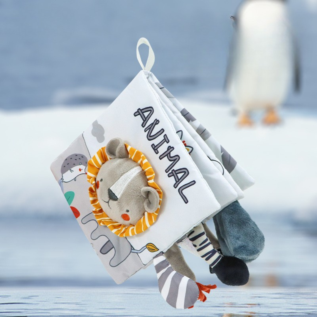 This soft, interactive playbook offers a world of textures, colors, and playful elements to keep little ones engaged. From crinkly pages to plush animal details, every feature encourages sensory exploration and motor skill development. Perfect for curious hands, it provides a fun and safe way to explore new textures, sounds, and movements.