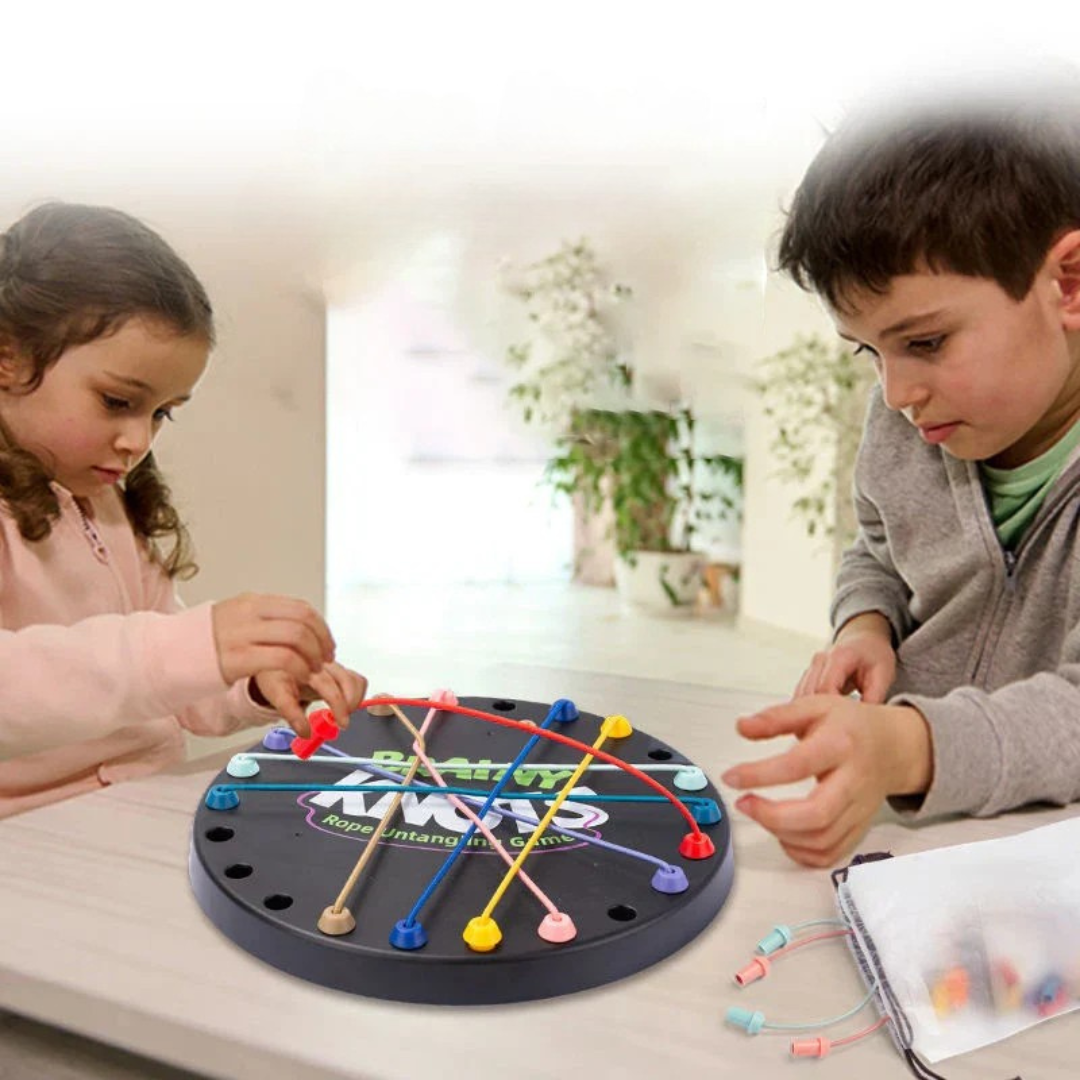 This unique puzzle game offers an exciting blend of fun and education, designed to help children develop cognitive skills through playful challenges. Perfect for family bonding, the game promotes teamwork, social interaction, and logical thinking as kids work together to untangle the twisted knots. It’s a great way to combine fun and learning, all while improving fine motor skills and problem-solving abilities.
